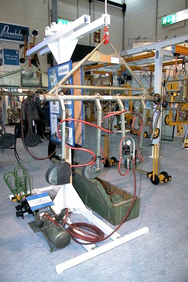 Auf der glasstec 2004 wird das 2-Kreis-Vakuumhebegerät 7211-DS3 vorgestellt. Weltweit ist dies das erste Vakuumhebegerät, das 1000 kg auf der EU-Baustelle drehen und schwenken kann. Zudem erfüllt es die Anforderungen aus der neuen Sicherheitsnorm EN 13155.