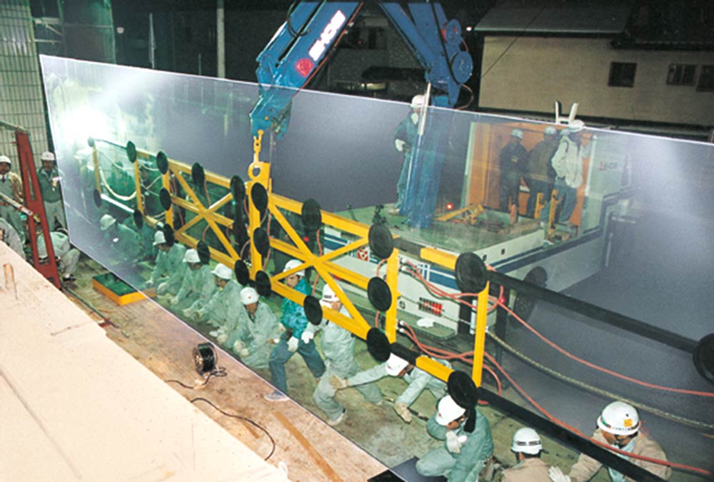 Für einen japanischen Kunden konstruiert Pannkoke 1994 ein Vakuumhebegerät zum Einsetzen einer Schaufensterscheibe. Diese Scheibe hat die gigantischen Maße von 12 x 3 m, eine Glasdicke von 22 mm und ein Gewicht von 2.000 kg.Das Einsetzen ist so einmalig, dass es in jeder japanischen Nachrichtensendung gezeigt wird.