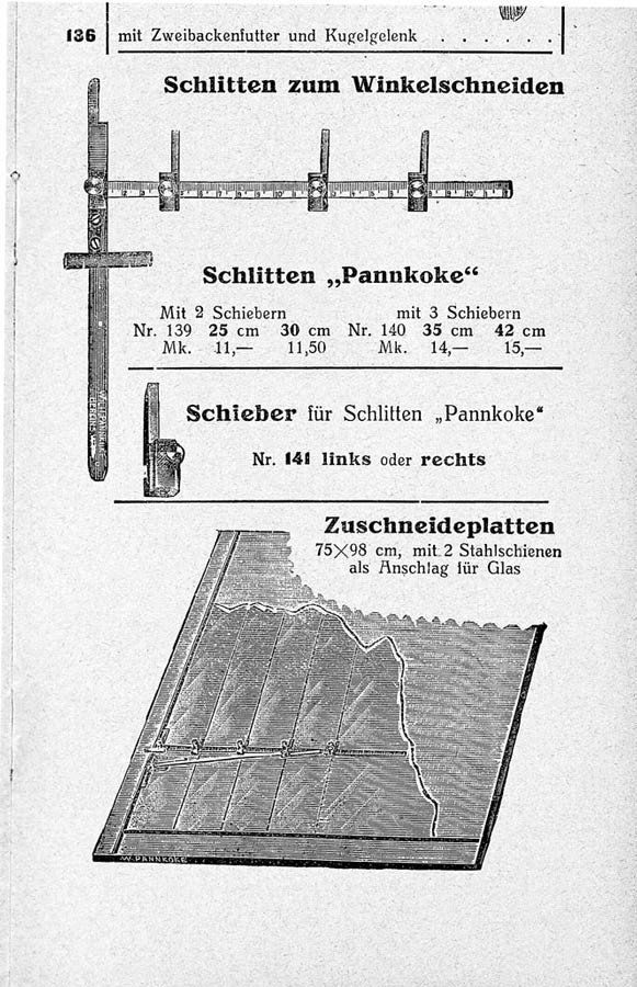 Noch in Bordeaux erfindet Wilhelm Pannkoke 1900 den Glaszuschneideapparat, der noch heute als Zuschneideschlitten verkauft wird. Auf Rat seines Lehrmeisters lässt er sein geniales Werkzeug patentieren, nimmt Produktion und Vertrieb in die eigenen Hände und gründet Ende 1900 in Berlin sein Geschäft für Glaserwerkzeuge und -bedarfsartikel.