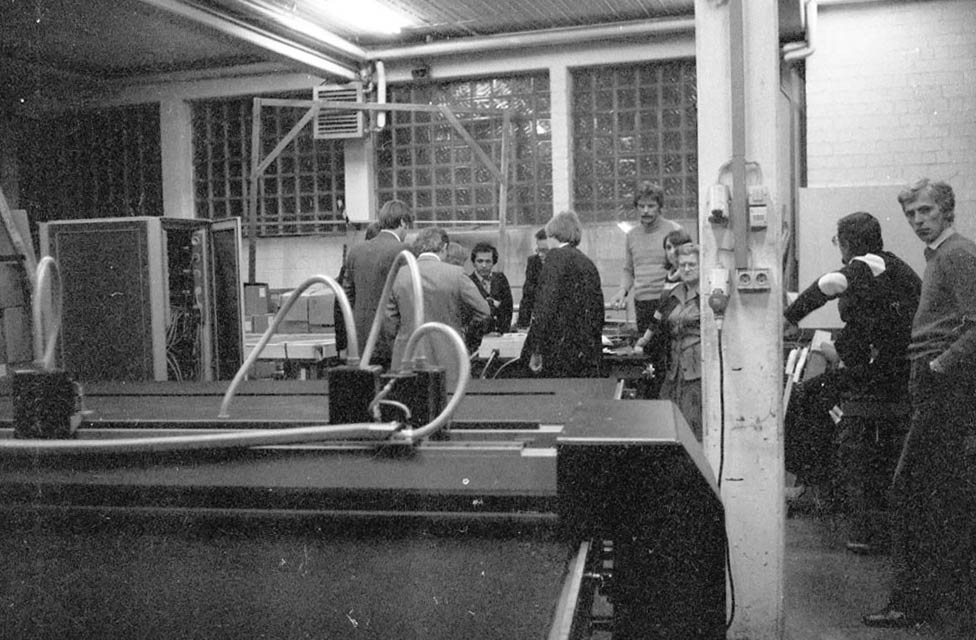 Inzwischen ist der Bunker viel zu eng geworden und die Firma bezieht die neue Produktionsstätte im Händelweg in Lübeck. Die Entwicklung geht ungebremst weiter. Es werden die ersten Schneidtische und Glastransportgestelle gefertigt.