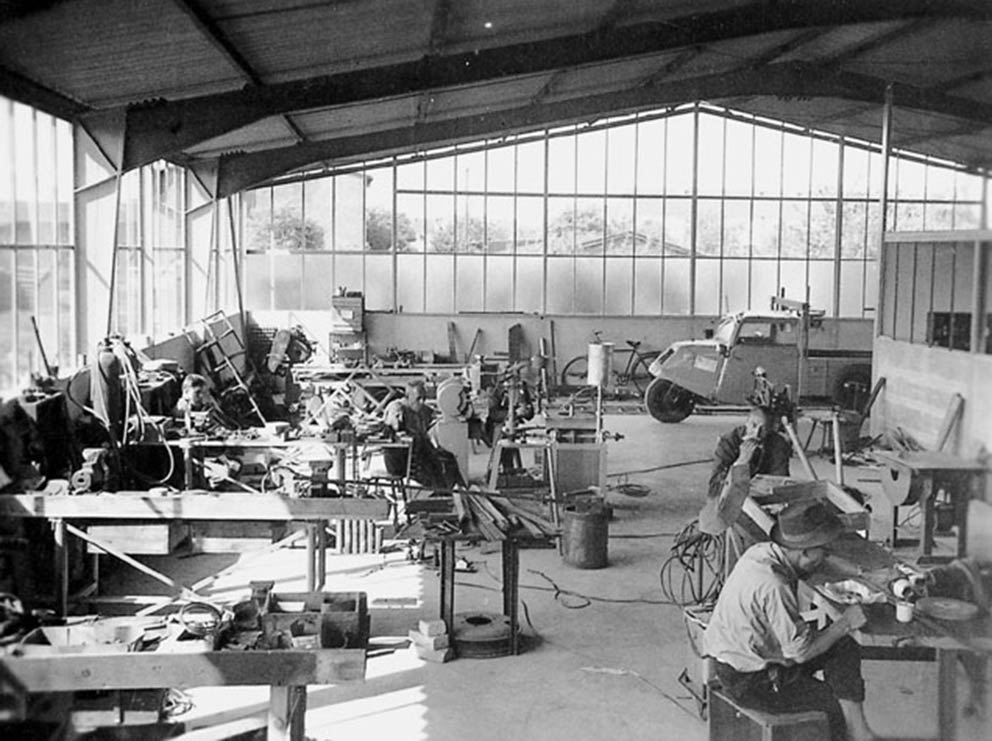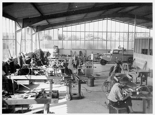 Auf dem 1. Deutschen Glasertag in Goslar werden die neuen Maschinen vorgestellt. Mit dem ersten Geschäftswagen, einem DKW, Jahrgang 1936 mit Holzkarosserie, geht es schwer beladen von Glasertag zu Glasertag, um die neuen Maschinen vorzustellen, mit den Kunden zu fachsimpeln und neue Ideen für weitere Entwicklungen aufzunehmen.