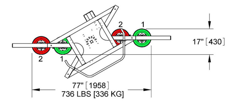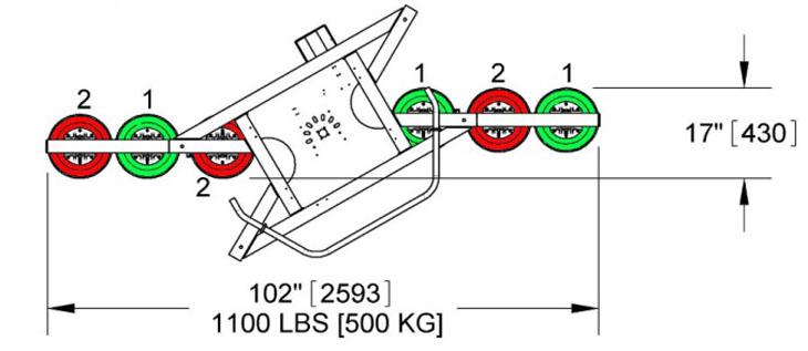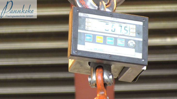 Nehmen wir an, die angesaugte Platte hat eine gleichmäßige Gewichtsverteilung über die ganze Fläche. Wenn die Platte eine Länge von 4 m, eine Breite von 2 m und ein Gewicht 500 kg hat, könnte die Last in 1m breite Stücke zerlegt werden. Jedes Stück würde dann mit 125 kg angenommen werden, die mittig von dem Meter-Stück angesetzt werden.