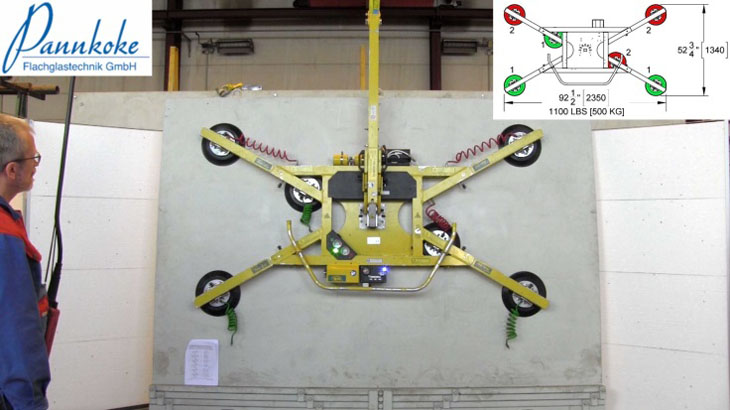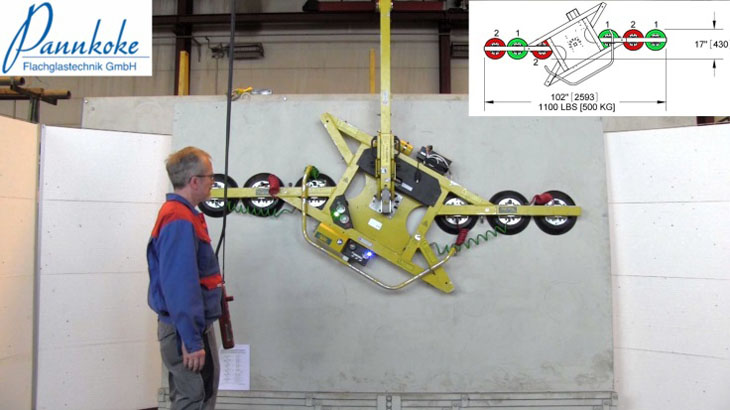 Versuchen Sie immer, die Sauger von jedem Vakuumkreis gleichmäßig über die Fläche zu verteilen. Ändern Sie nie die Saugeranordnung in einer anderen Form als Sie vom Hersteller vorgegeben wird. Er muss wissen, wie das Gerät gemäß der EU-Norm EN 13155 sicher auszulegen ist.