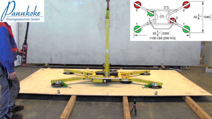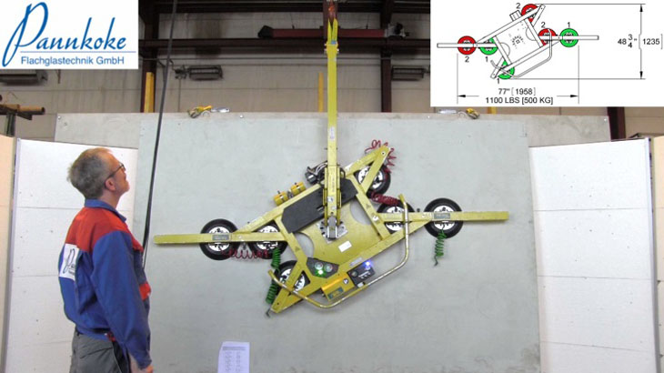 Das bedeutet, wenn ein Gerät für 500 kg ausgelegt ist und über zwei Vakuumkreise verfügt, muss jeder Vakuumkreis auch die Prüflast von 1000 kg sicher halten. Nach unserem Verständnis der EU-Norm EN 13155 muss dies mindestens für 5 Minuten gewährleistet sein und zwar in jeder Lage.